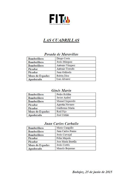 Los de Fernando Peña para esta tarde en Badajoz, Posada. Gines y Carballo. Sorteo y Cuadrillas